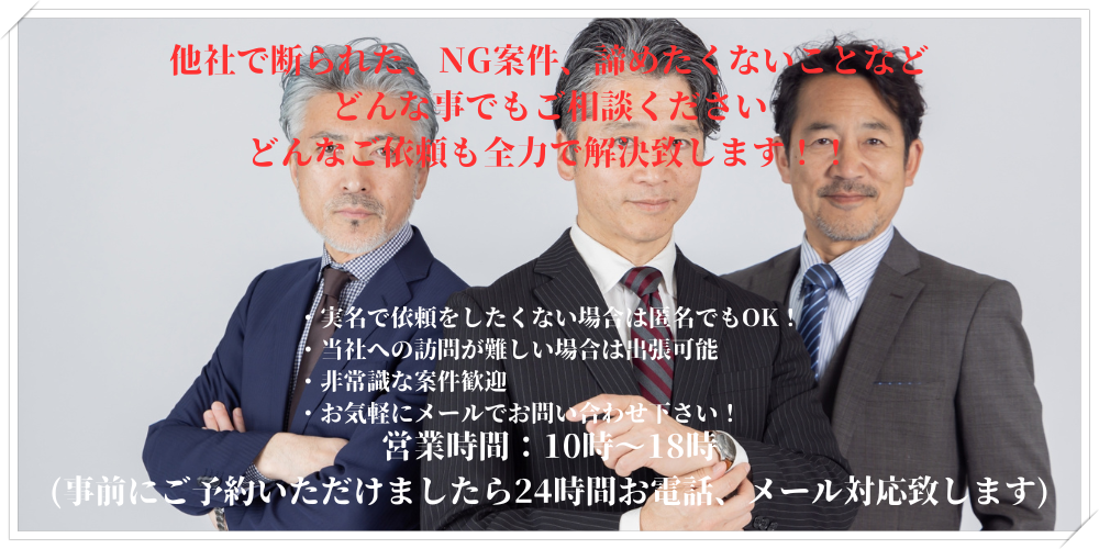 基本的にはございません。しかし法律に抵触するような案件についてはお断りさせていただいております。 ご判断が難しい場合は、まずは無料相談にてお問い合せ下さい。